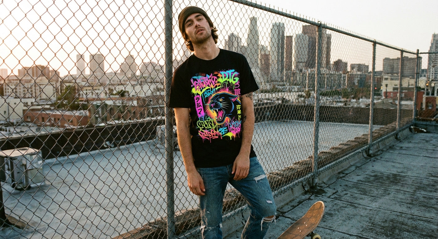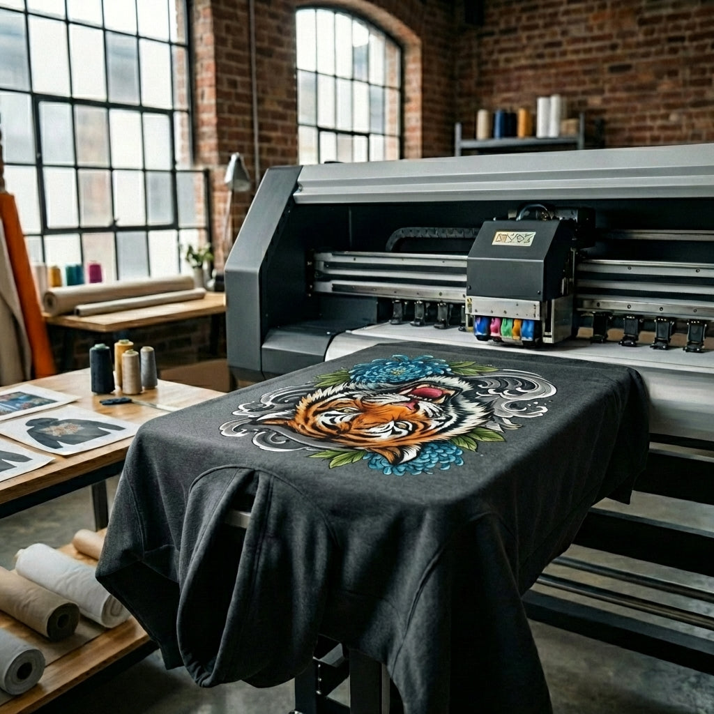 DTG (direct-to-garment) is a digital printing method where ink is printed directly into the fabric using high-precision printers. This allows for full-color designs, fine details, and smooth gradients with a soft, breathable finish that feels part of the garment—not layered on top.